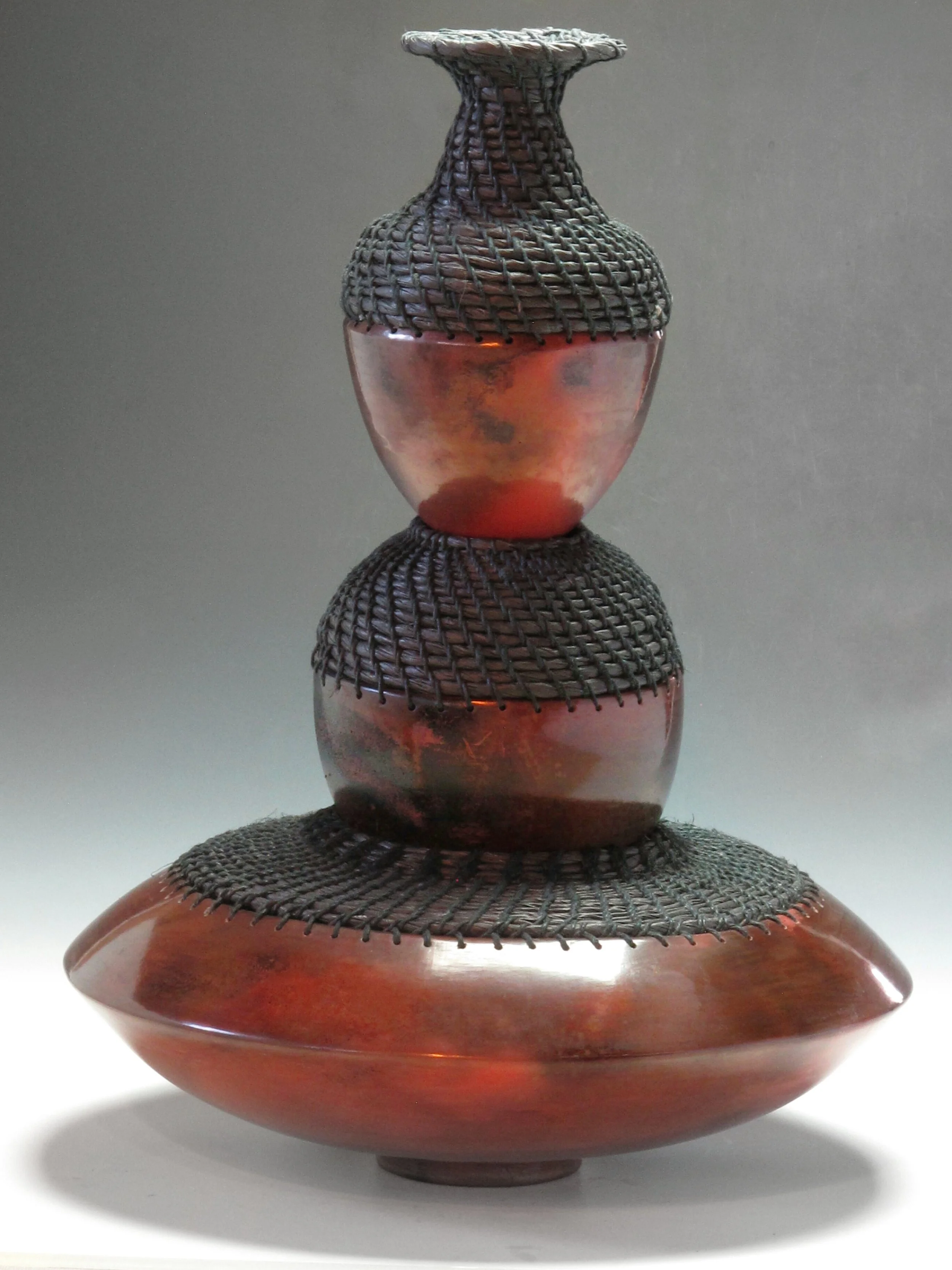PJ Anderson, Red Series, 2016. Earthenware, terra sigillata, woven paper, hemp cord. 42cm x 30cm x 30 cm. Photo: Crystal Nykoluk. COURTESY OF THE ARTIST.