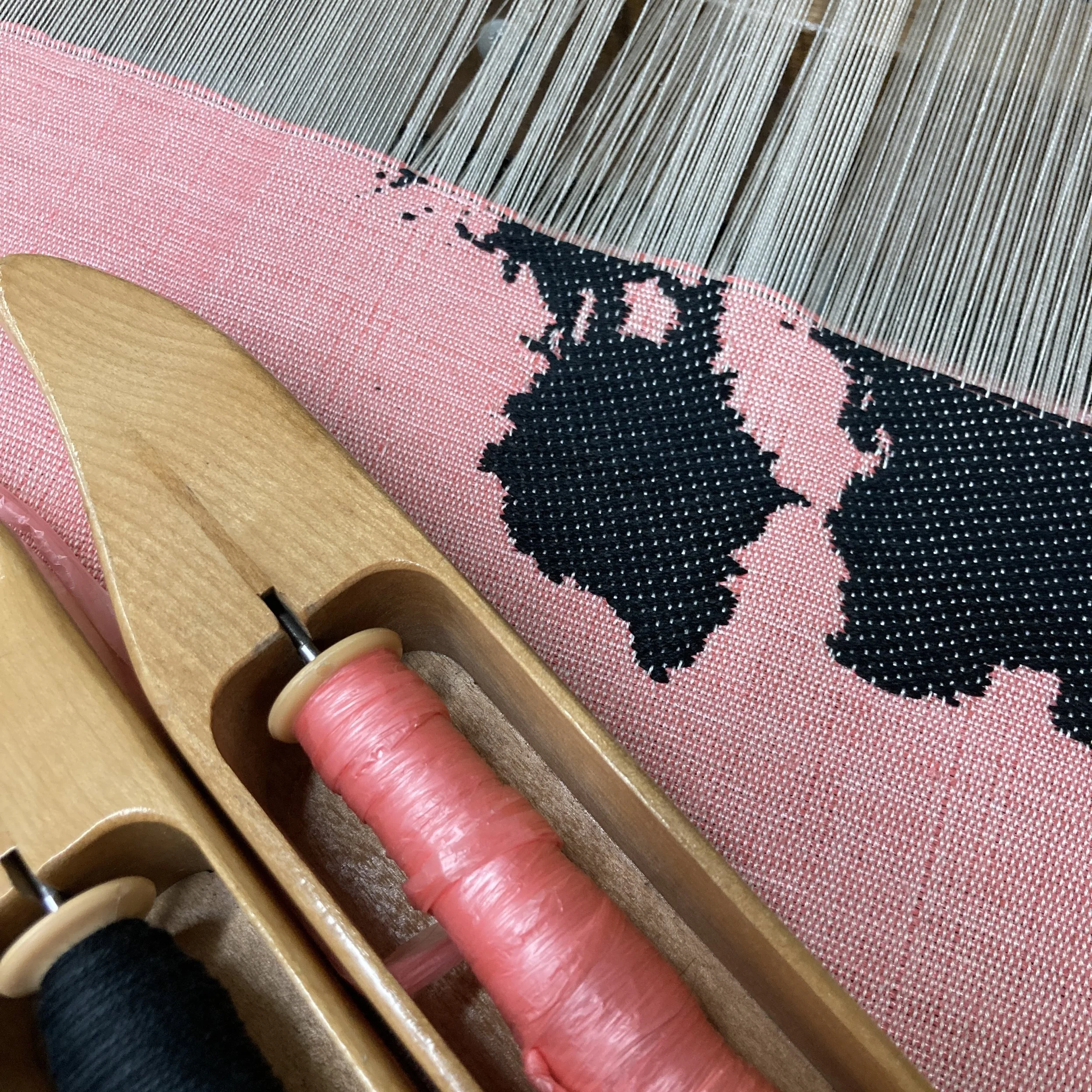 On a personal level, what I really appreciate about this technology — and this applies to the analog and the digital — is it dramatically expands the realm of possibility in terms of woven pattern and image. Because what happens with those punch cards, or with the binary ones-and-zeroes code, is that the warp threads are controlled individually, rather than tied banks of threads on harness looms, which means the realm of possibilities in terms of pattern and image is really endless. The Jacquard allows for working with fluid lines and even photorealism.